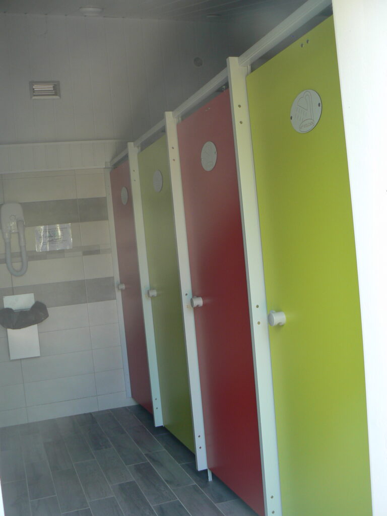 - Cabines de douche (eau chaude gratuite à volonté)